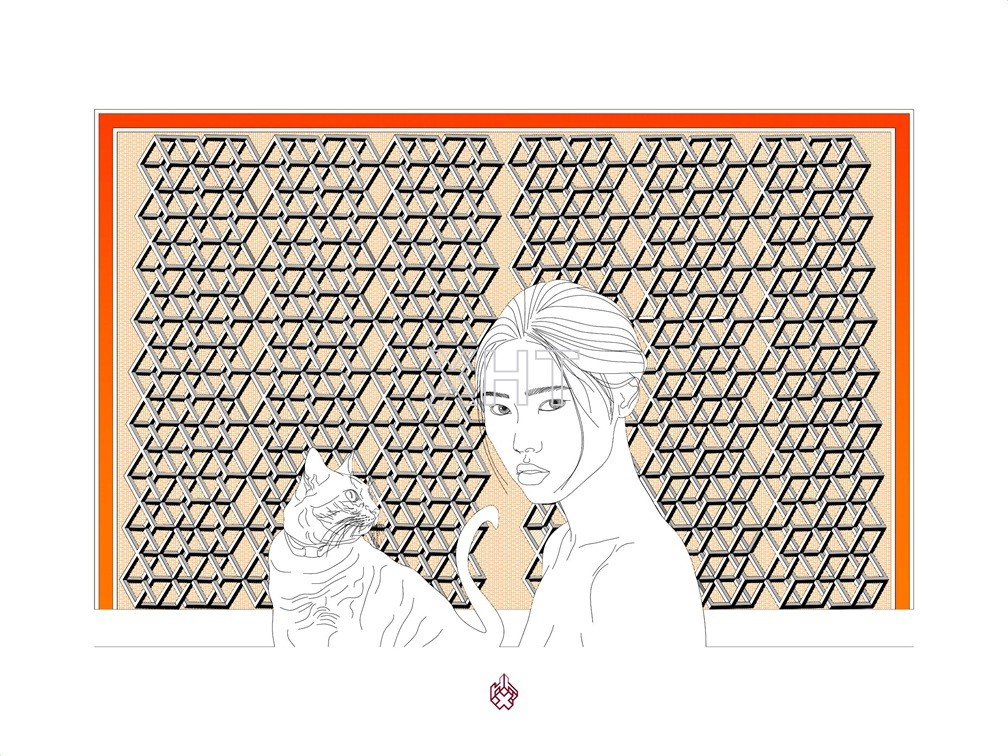 «Gato pazguato» Obra digital (AutoCAD), 50cm x 35cm (19 1/4″ x 13 3/4″) giclée sobre Fabriano GF 160g 56k EDICIÓN LIMITADA